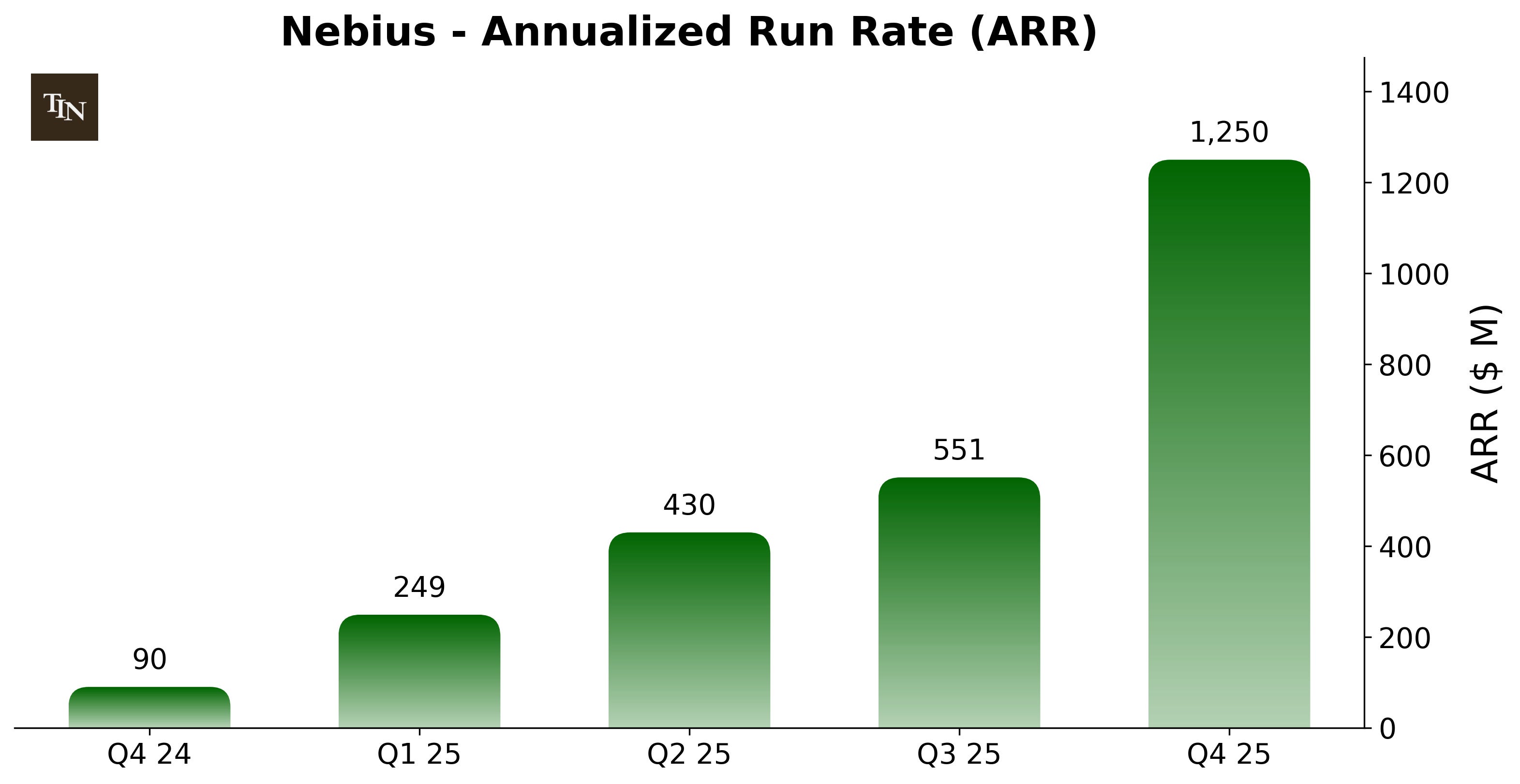 The metric to track for Nebius is Annualized Run-Rate (ARR) Revenue, defined as the last month of a quarter’s revenue multiplied by twelve.